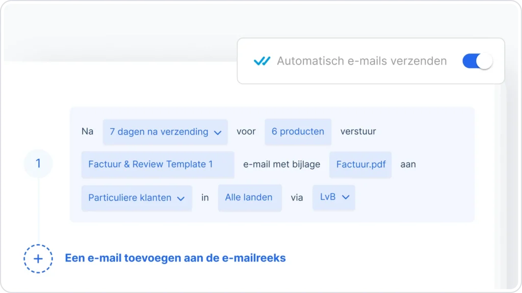 Ja. Met onze slimme regels en triggers kies je zelf wanneer en aan wie een e-mail wordt verstuurd, bijvoorbeeld bij specifieke producten of alleen bij bepaalde bestelstatussen.